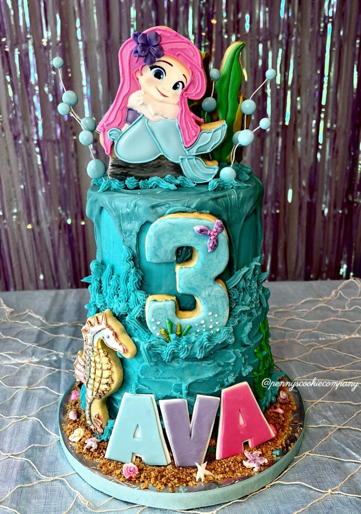 A cookie cake with custom cookies to match makes for the perfect dessert table at any event!