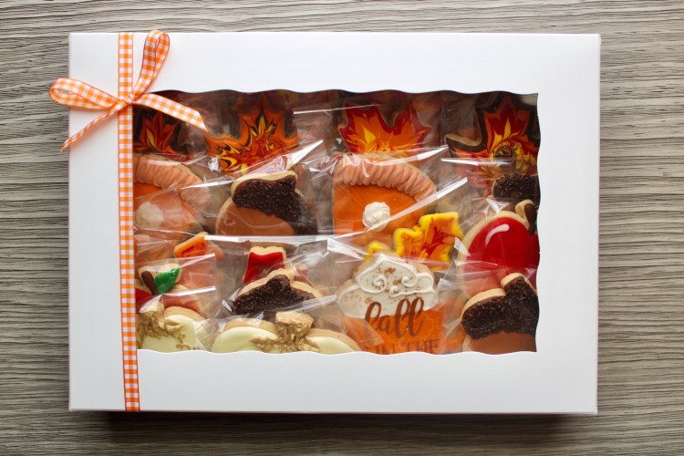 All cookie orders come packaged in a box/boxes with your choice of ribbon or no ribbon. (Ribbons vary on availability)